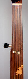 A friend gave me that tone ring from a French 4 or 8 string banjo. I made a neck for it. I tryed to make an oak open back rim for it but I did not like the sound so I closed it like it was originaly. The sound is still not fantastic but I like the neck. It could be used on an other banjo. Maybe some day...