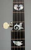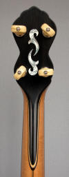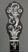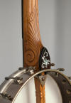One of my favorite Fairbanks head inlays has always been the Electric s/n 154 which you can see on Bill Michal site, it is so inventive, so unique in its assymetry, so modern for its time! But I will never own that valuable banjo so I decided to make one. As you will see if you compare with the original, I changed the inlay's engravings on the head but still remaining in the style of around 1890. As I did not like so much the inlays on the neck of the original, I made my own, and also for the back of the head and the heel. Here also I tried to stay in the style of this period and to be coherent with the head inlays. This Fairbanks heel carving has always been one of my favorite pattern too.